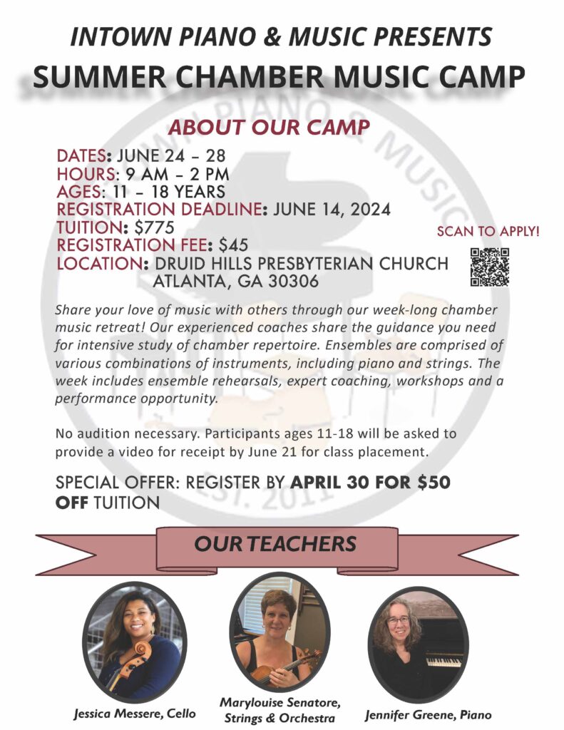 Music summer music camp at Intown Conservatory of Music is a fun and relaxed atmosphere for kids to hone their sight reading, theory, composing, ensemble and performance skills while having a great time making music together with friends. We will wrap up an exciting week with a performance to show off everyone’s new skills!